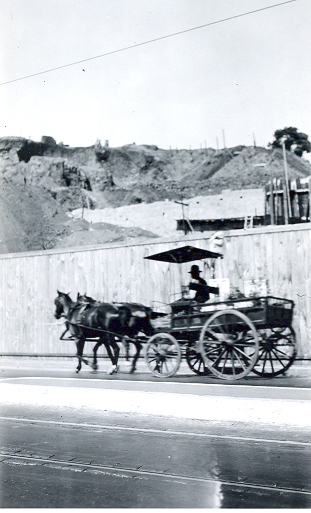 Muro de San Luis, abajo una carreta de 2 caballos visto desde A.v España