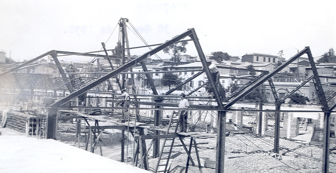 Talleres, se ve una parte de la losa de la techumbre de salas anexas a los talleres, 30 septiembre 1930